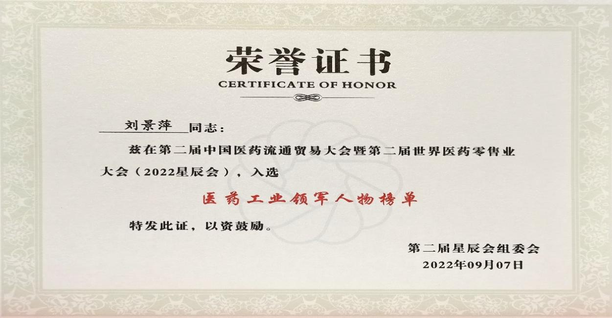 在本次开幕式上,发布了“医药工业领军人物”、“医药零售领军人物”榜单,尊龙卡Z6药业集团刘景萍董事长凭借在儿药领域多年的努力探索和对行业的杰出贡献,荣获“医药工业领军人物”称号。